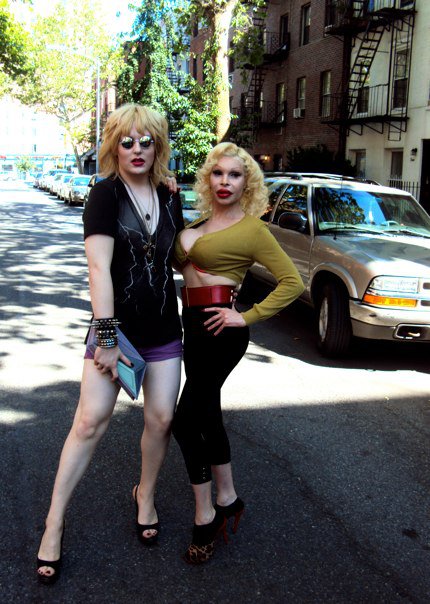 If you follow my blog/Twitter you must surely know I LOVE brunch (see here --> NYC Unlimited Mimosa Brunch = Drunk Trainwreck glaMOUR!)!! NYC does brunch like no other. We play brunch like a sport. It's true. Now that summer is here I rounded up some of my peeps; the glamorous Amanda Lepore and a gaggle of my gays and hit the town in full looks, prepared to drink ourselves silly! Thanks to my new favorite blog I ♥ Brunch, I have discovered a new all-you-can-drink jam: Vamos! on 1st Ave in Gramercy. It's a Mexican joint that has an unlimited frozen margarita drink special for only $6!! I do love a champagne mimosa....but I love tequila just as much! The entrees are all cheap too and way tasty! They have yummy Mexican choices like huevos rancheros along with traditional brunch items like Eggs Benedict and pancakes (but with a Latin flair). I had a chorizo, bell pepper and jack cheese omelet that hit the spot and the guacamole was bitchin'! The brunch option is fairly new to Vamos! so it wasn't over-crowded or loud...which was quite the perk! My posse and I caused quite a stir and I believe we commanded everyone's attention (shocker). Feeling ourselves and our tequila buzz we hit the streets for an impromptu photo shoot and general life living.