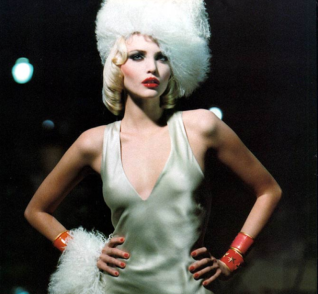 ....aaaaaand the award for my "favorite 90's supermodel" goes to.....Nadja Auermann! I mean, who wouldn't want to look like this stunning German glamazon? She was discovered at a Berlin cafe and was quickly signed to Elite in 1991. She was working steady for a few years but her career really skyrocketed in 1993 when she decided to bleach her hair platinum blonde. Her resemblance to Marlene Dietrich (which was pointed out by fashion designer Valentino) conveniently coincided with fashion's return to old school Hollywood glamour during the mid-90's, which further escalated her to "supermodel" status. She was also one of the few models to grace the cover of two fashion magazines at the same time, Sept. 1994's US Vogue and US Harper's Bazaar. Get. Into. It.
